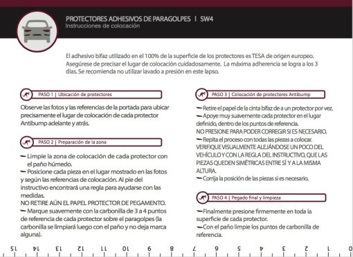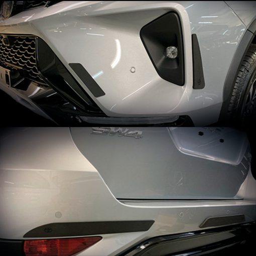 PRODUCTO: •KIT COMPUESTO POR 7 PROTECTORES AUTOADHESIVOS PARA LA PROTECCIÓN DE PARAGOLPES FRONTAL Y TRASERO DISEÑADOS EN FORMA EXCLUSIVA PARA TOYOTA SW4.